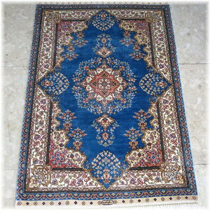 て作り玄関マットのシルクペルシャ絨毯メダリオン